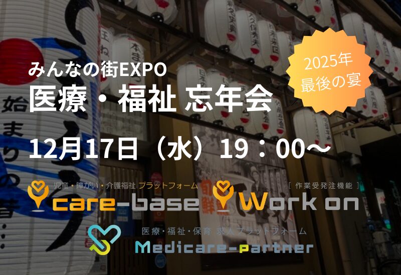 『みんなの街EXPO〜医療・福祉忘年会 in 大阪・梅田』は、医療・看護・福祉・リハビリ・士業・行政・教育関係など、支援に携わる皆さまが一同に会する特別な年末イベントです。